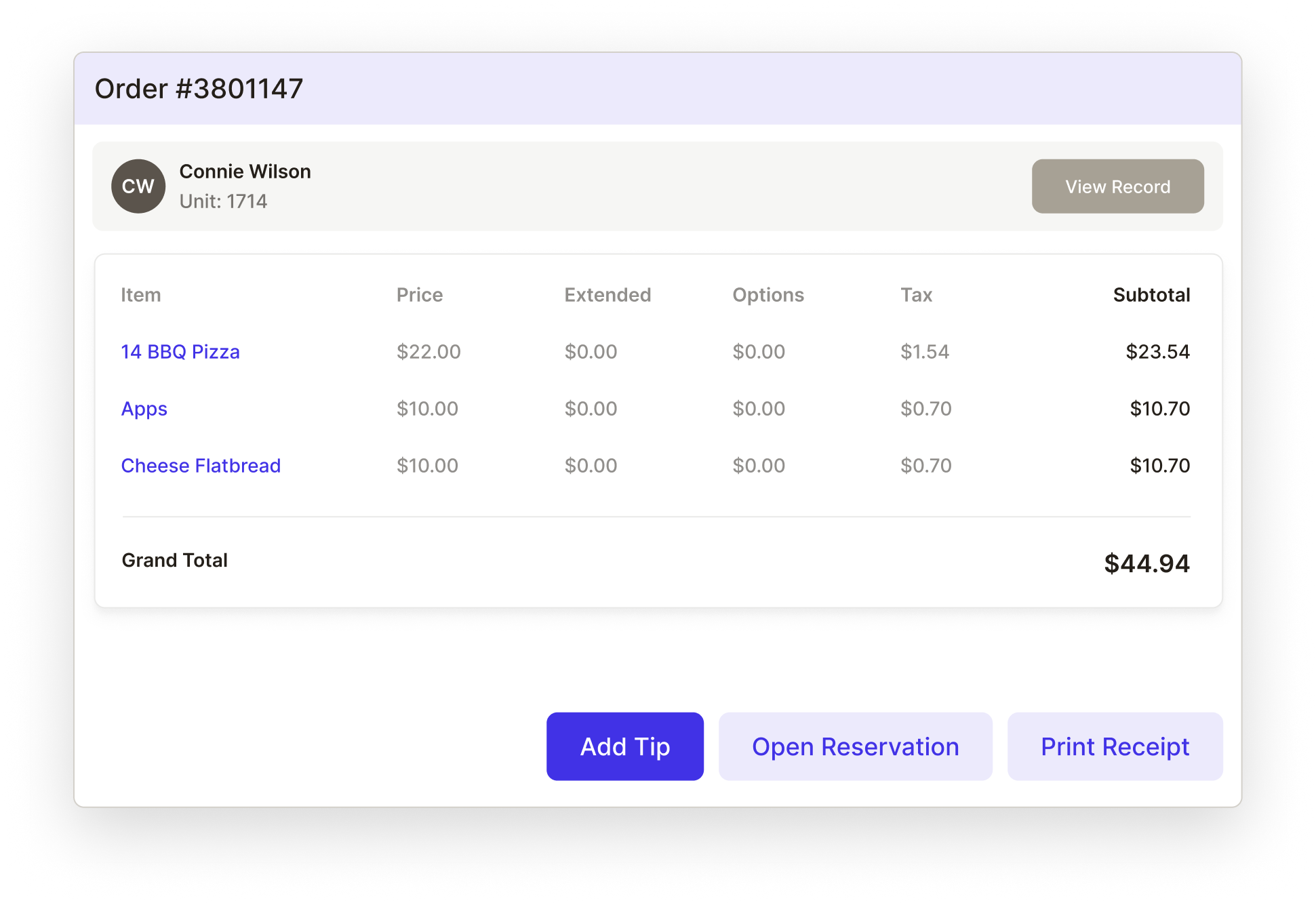 Natively. Every order can be charged to the room or site by name or room number, keeping the folio accurate without manual reconciliation.